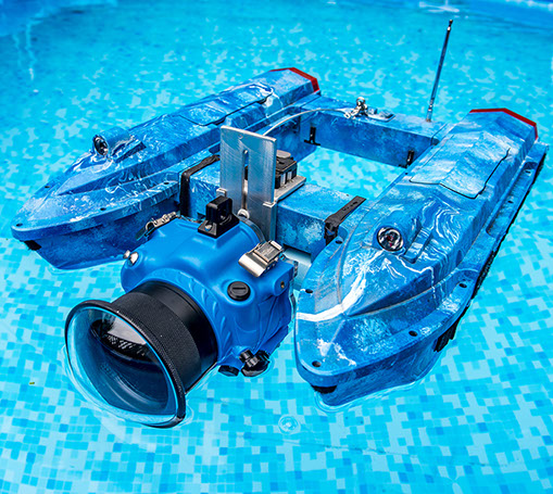 The CataMarine™ is built for all weather conditions, the added support means that the boat won't roll in waves or if a bird decides to come aboard. The front of the CataMarine™comes with a movable mount so you can adjust your under water housing depending on the species you want to capture. Since this is a remote control camera system, operating on terrain unsuitable for humans we strongly recommend using a safety harness when ever operating.